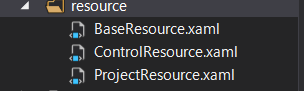 ProjectResource.xaml・・・ControlResource.xamlに定義されているスタイルを継承し、プロジェクトごとのスタイルを定義します。